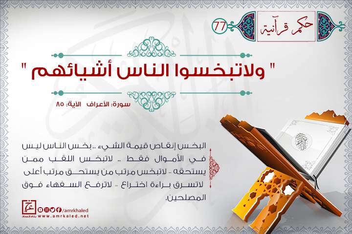 حكم قرآنية.. "البخس إنقاص قيمة الشيء.. بخس الناس ليس في الأموال فقط"