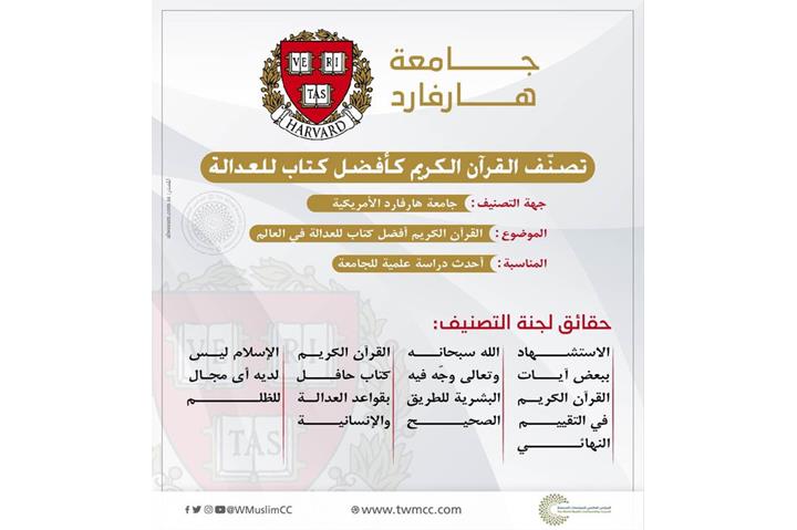 جامعة هارفارد : القرآن الكريم أفضل كتاب للعدالة .. 3أسباب بررت التصنيف
