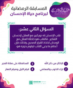 سؤال الحلقة الثانية عشر.. مسابقة برنامج عمرو خالد "حياة الإحسان" رمضان 2022