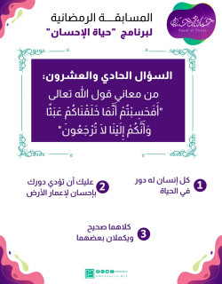 سؤال الحلقة الحادية والعشرون.. مسابقة برنامج عمرو خالد "حياة الإحسان" رمضان 2022