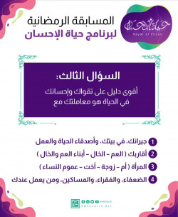 سؤال الحلقة الرابعة والعشرون.. مسابقة برنامج عمرو خالد "حياة الإحسان" رمضان 2022