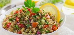فطارك عندنا اليوم.. تبولة الكينوا وصدور الدجاج الحارة بالبطاطس والحلو كريم كراميل