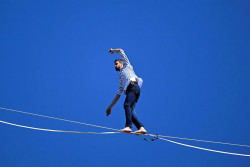 فيديو بحبس الأنفاس| يمشي على حبل معلق في الهواء لأكثر من 2كلم